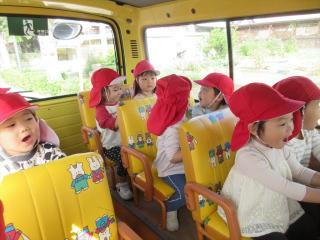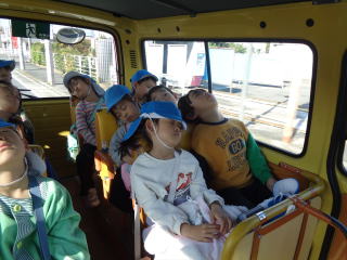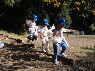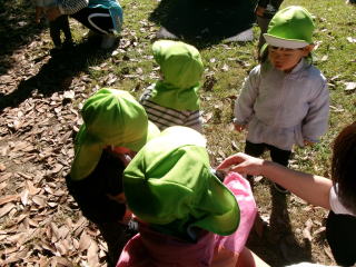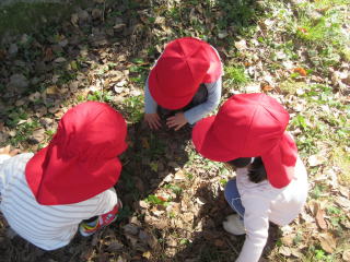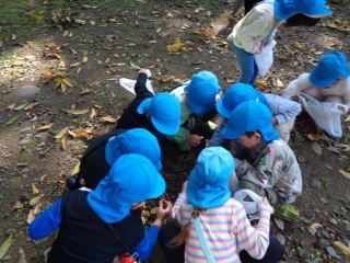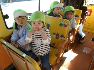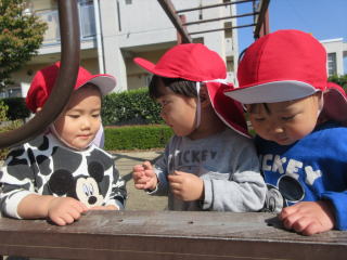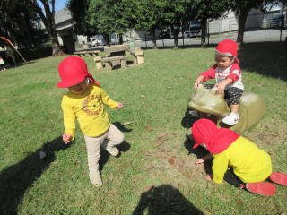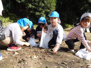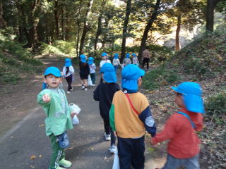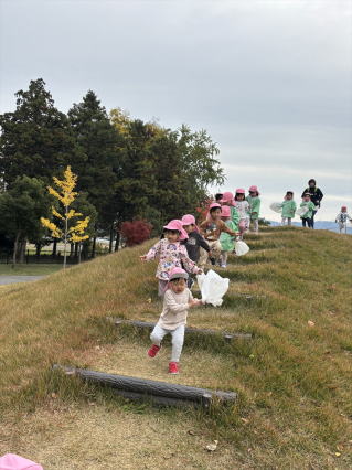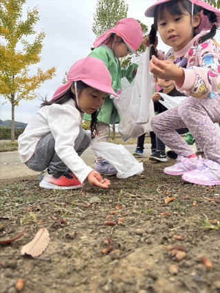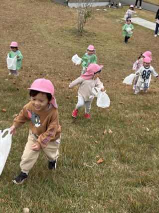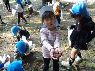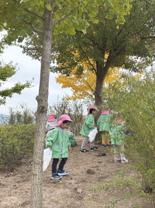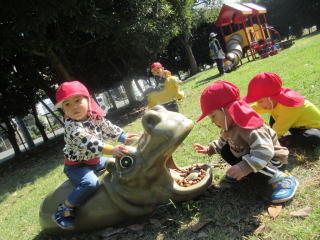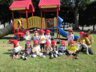 園バスに乗って公園に行ってきました。 遊具で遊んだり、どんぐり拾いをしたりして楽しみましたよ