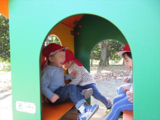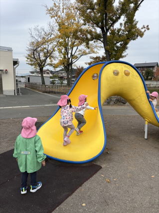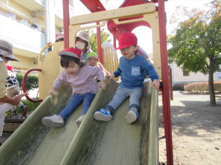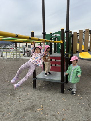 公園までお散歩して、遊具で楽しんできましたよ。 お友だちといっぱい体を動かしてきました