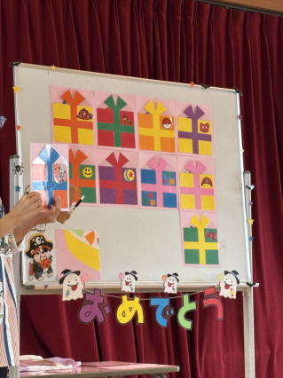 11人のお友だち(2人お休み)をお祝いしましたよ。 パネルシアターでは、いろいろな妖怪が出てきてみんなで盛り上がっていましたよ