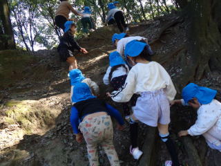 園バスに乗って群馬の森に行ってきました。 遊具で遊んだり、どんぐり拾いをしたりして楽しみましたよ。 最後は崖のぼりにも挑戦!帰りのバスはみんなお疲れモードでしたよ