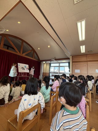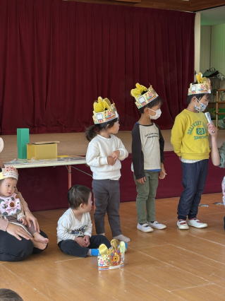 6人(1人お休み)のお友だちをお祝いしました。 出し物のパネルシアターも、とっても良く見て楽しんでいましたよ