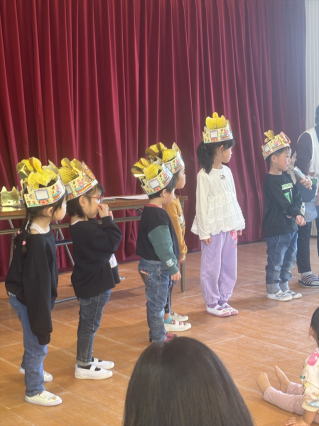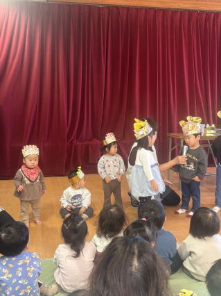11人のお友だちをお祝いしましたよ。 出し物では、くいしんぼうのゴリラが出てきたり、心温まるお話しを聞いたりしましたよ
