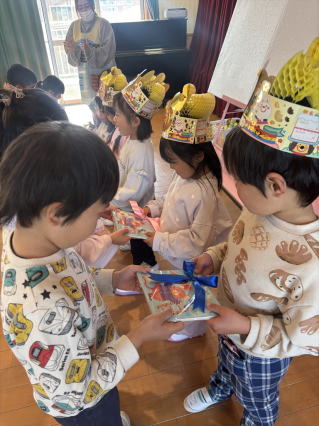 4人のお友だちをお祝いしました。 出し物では、みんなで大きな声を出して楽しみながら参加しましたよ