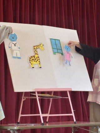 5人のお友だちをお祝いしました。 歌遊びをしたあとは、大人気のねこざかなのパネルシアターを見て楽しみましたよ