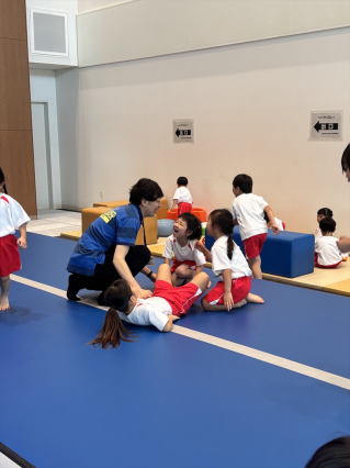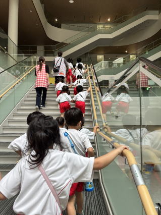 火災が起きたときの避難訓練を行い、消防署員の方のお話をしっかり聞けました。 救急車や消防車も見学できましたよ