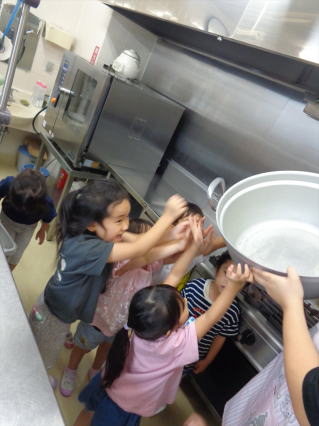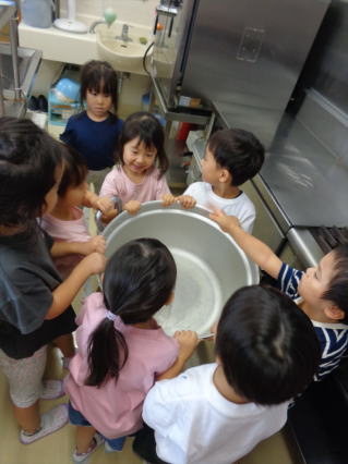 じゃがいも堀りでゲットしたいもをみんなでキレイに洗いました。 洗ったじゃがいもは、おやつで粉ふき芋にしておいしくいただきましたよ。