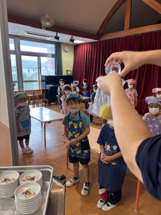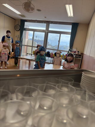 暑い夏には、かき氷!ということで、みんなでかき氷を食べました。 好きな味のシロップをかけておいしくいただきましたよ