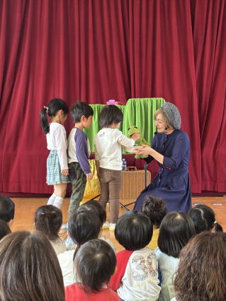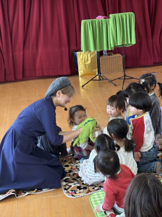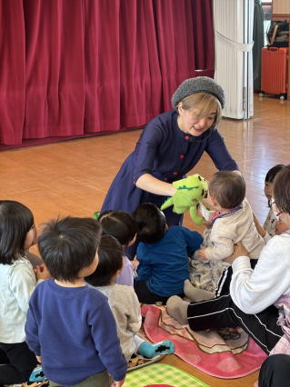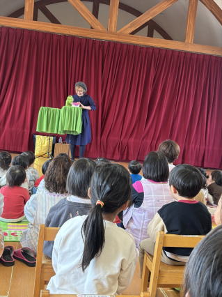 劇団バクさんによる『てぶくろを買いに』の劇を親子で見ました。 目の前で繰り広げられる劇にみんな夢中で楽しんでいましたよ